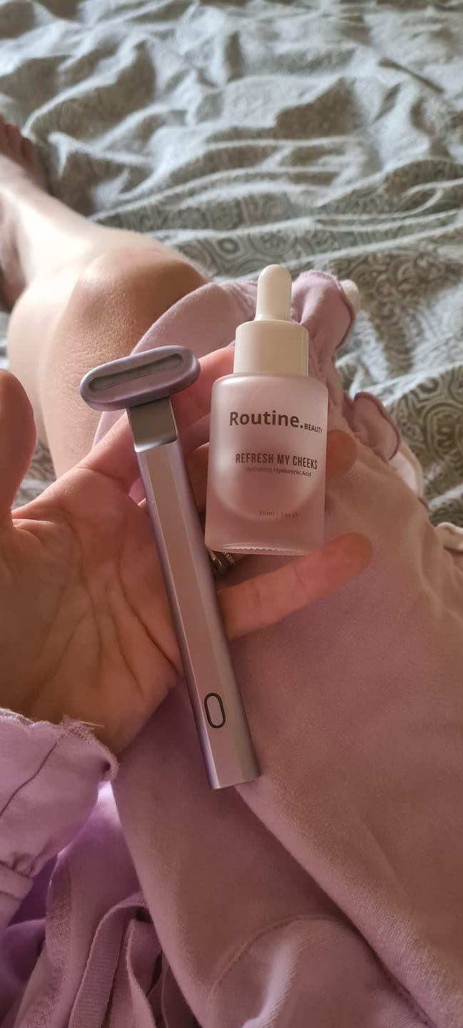 "I've been using the Routine serum and their red light wand for a few weeks now, and the results have been outstanding! The serum, packed with hydrating ingredients, absorbs quickly and leaves my skin feeling plump and radiant. It's the perfect companion to the red light therapy tool, which I use for just a few minutes a day. The combination has noticeably reduced my fine lines, improved my skin texture, and added a youthful glow to my complexion. Highly recommend for anyone looking to up their skincare game!"